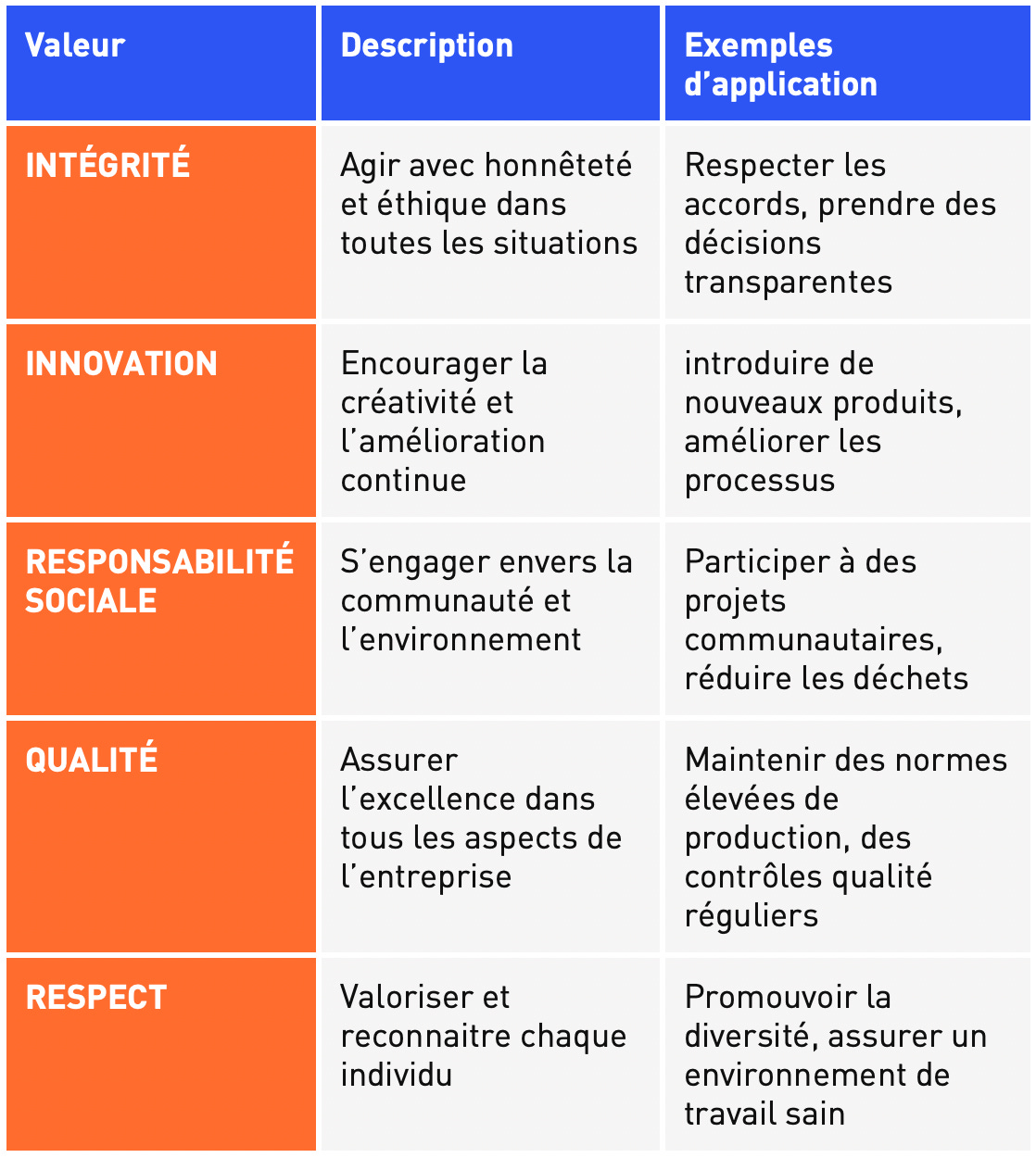 Associez chaque valeur à des comportements spécifiques et observables au sein de l’entreprise qui soient inspirants et guide de l’action.