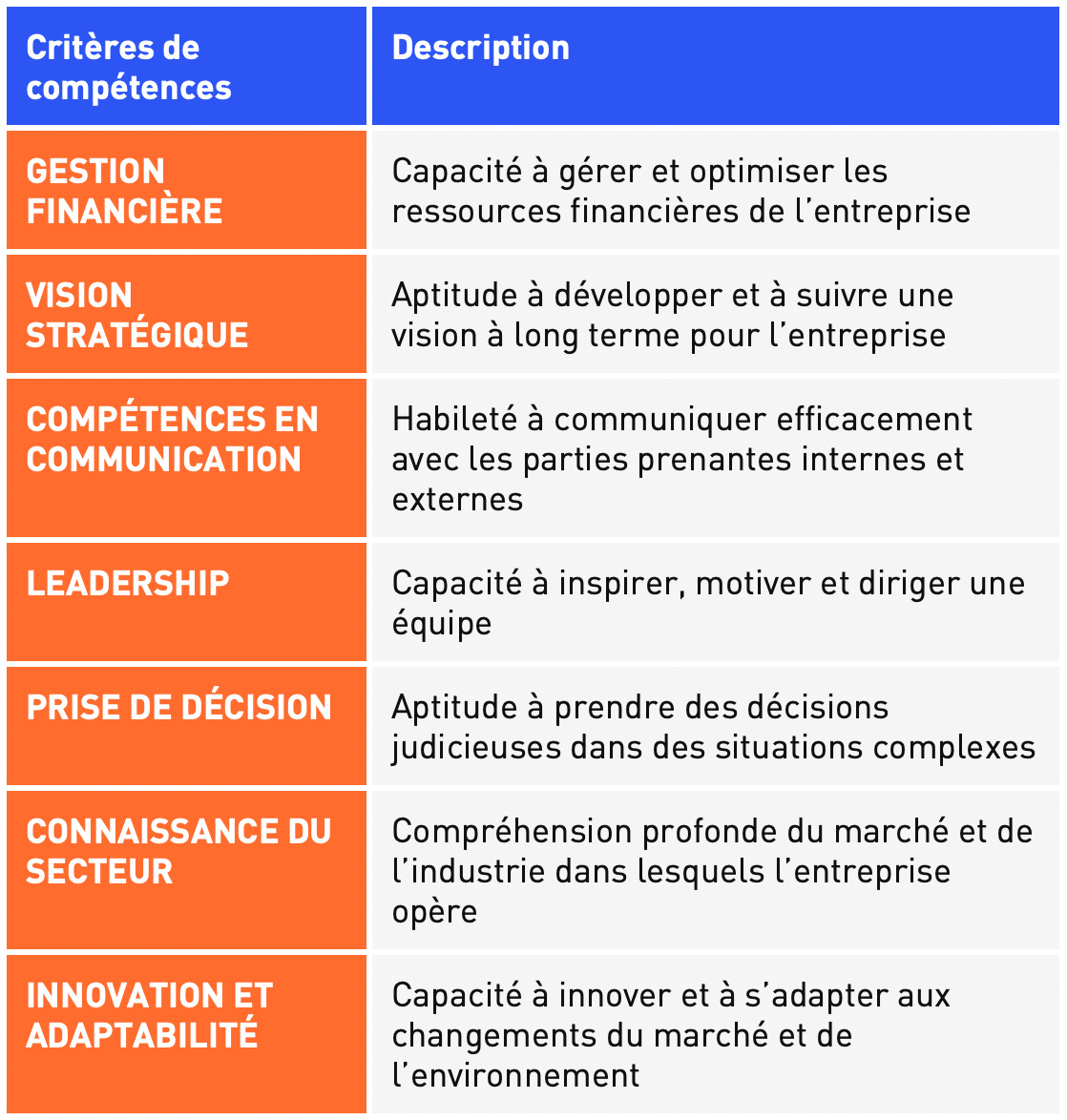 Pour naviguer en eaux troubles, nous vous proposons un outil efficace : la « Matrice des compétences ». Cette grille vous aide à évaluer objectivement les candidats potentiels. Elle consiste à attribuer des notes de 1 à 5 sur des compétences clés comme la gestion financière, la prise de décision stratégique, le leadership, ou encore la communication. Cette approche structurée vous permet de mettre en évidence les forces et les faiblesses de chaque repreneur potentiel, en évitant les pièges de décisions trop émotionnelles.